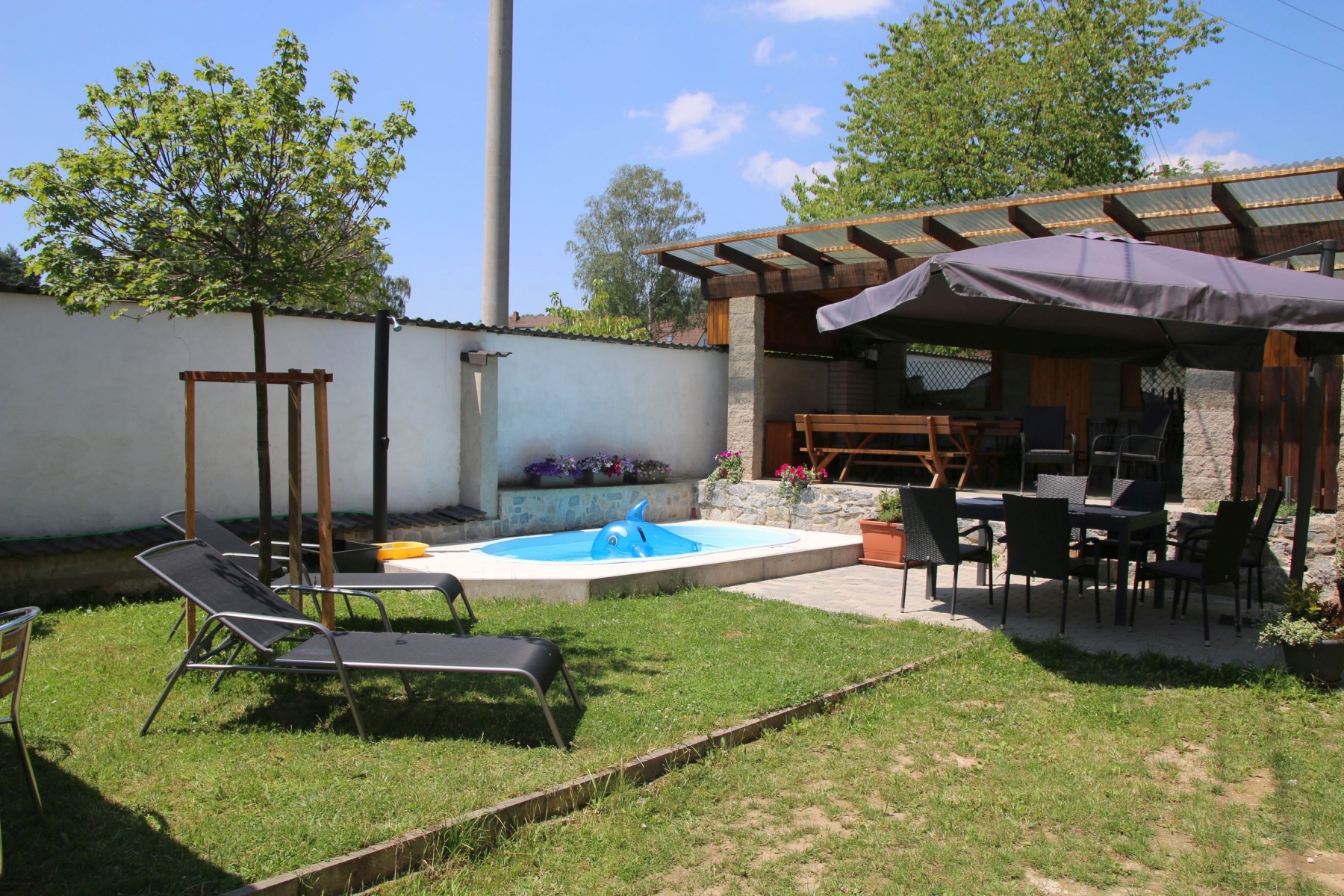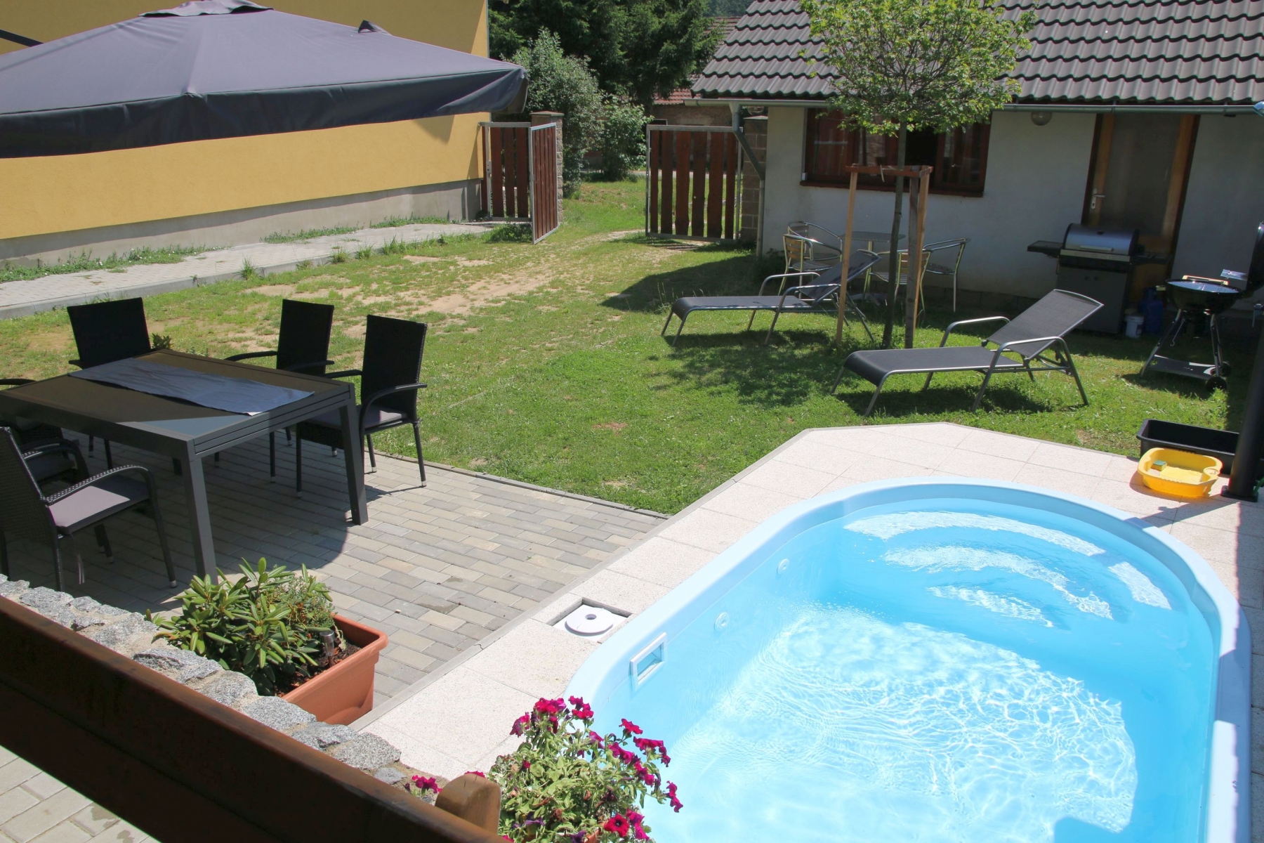 Balíček Relax : – zahrádka s posezením grilem a malým bazénem +50Kč/os/den (10 – 22h)